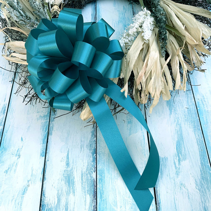 6 Teal Blue Green 8" Pull Bows - Gift Wrap, Wedding, Awareness Ribbon