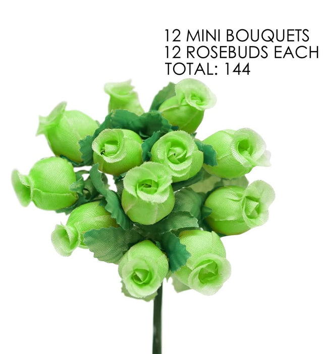 Apple Green Artificial Silk Mini Roses - 12 Dozens, 144 Rosebuds Total