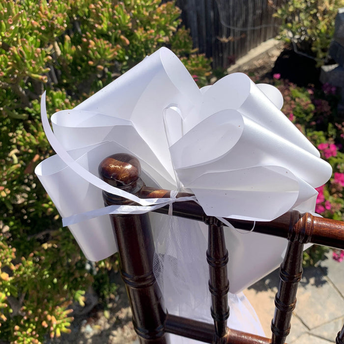 4 Assembled 8" White Wedding Pew Bows - Poly Satin Ribbon With Flowing Tulle Tails