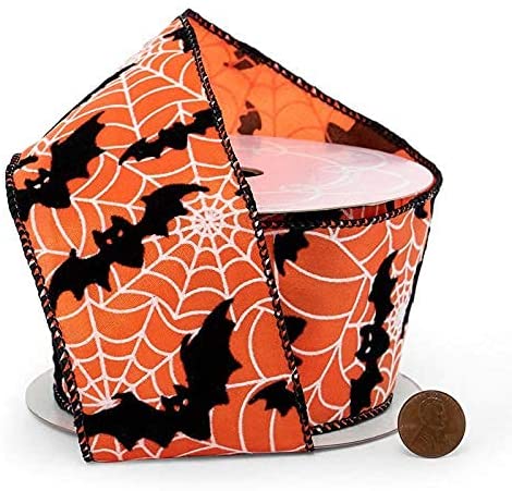 Bats & Webs Halloween Wired Ribbon - 2 1/2" x 10 Yards, Orange & Black