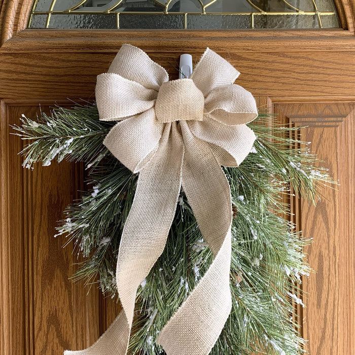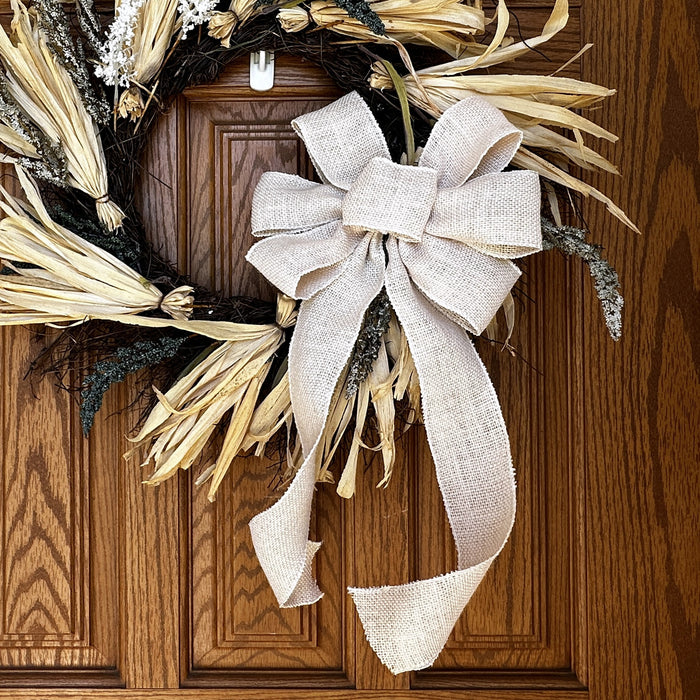 Beige Burlap Ribbon Wreath Bow - 10" Wide, 18" Long Tails