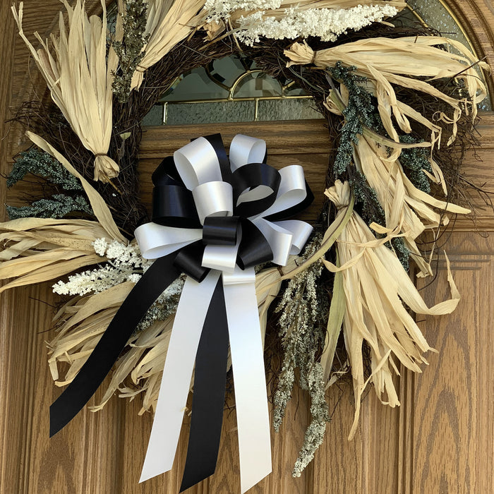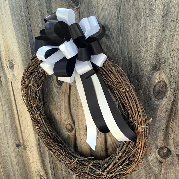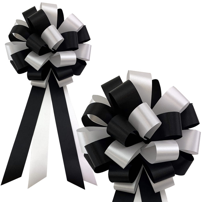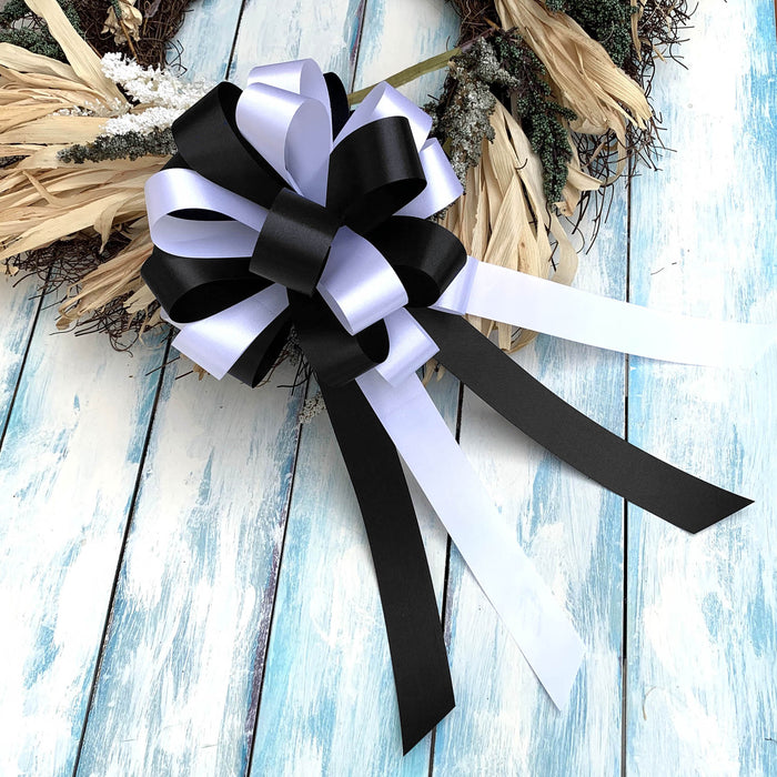 Black and White Pull Bows - 8" Wide, Set of 6, Wedding Pew Decorations