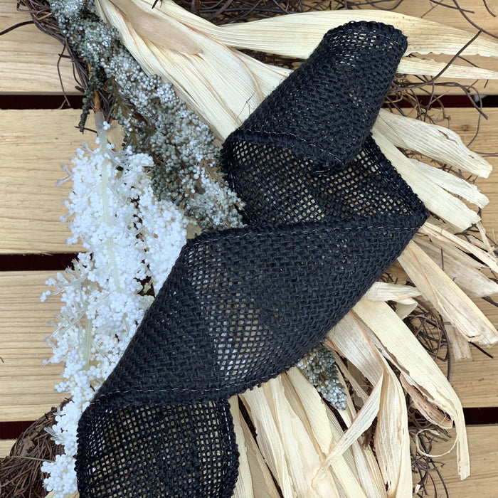 Black Fabric Burlap Woven Ribbon - 2 1/2" x 10 Yards