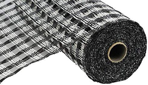 - Ribbon for Gift Wrapping - Black and White Checkered Plaid Deco Mesh Christmas Tree ribbon in a roll 10 inch wide x 10 yds for your Christmas crafts!