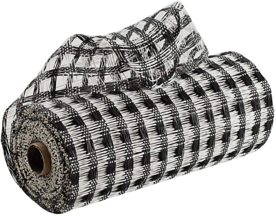 Buffalo Plaid Christmas Deco Mesh - 10" x 10 Yards, Black & White
