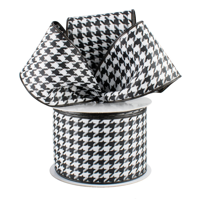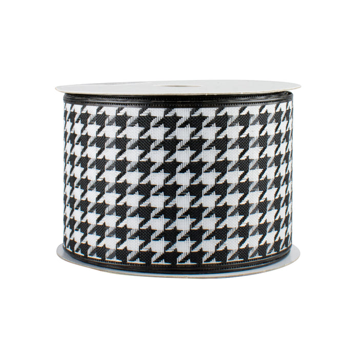 Black White Houndstooth Wired Ribbon - 2 1/2" x 10 Yards, Wired Edges