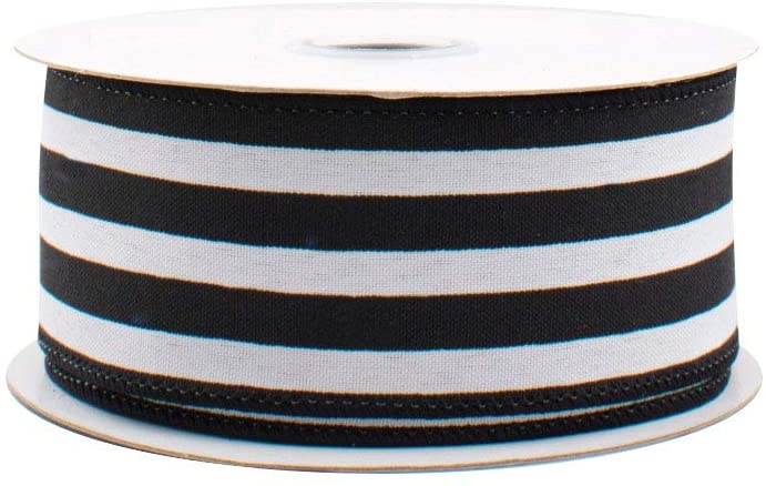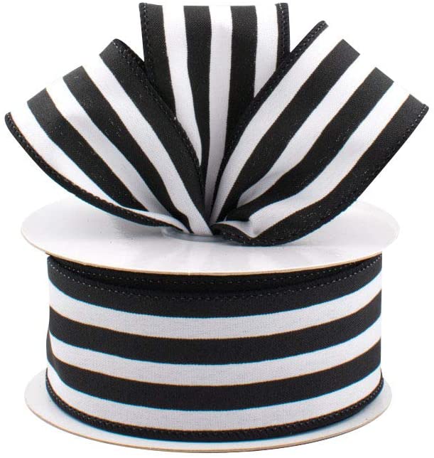 - Ribbon for Gift Wrapping - Black and White Striped wire edged Satin Ribbon - Perfect for Christmas, Valentine's Day, Halloween and Nautical theme parties