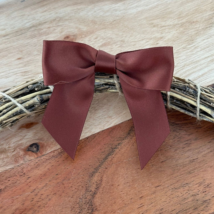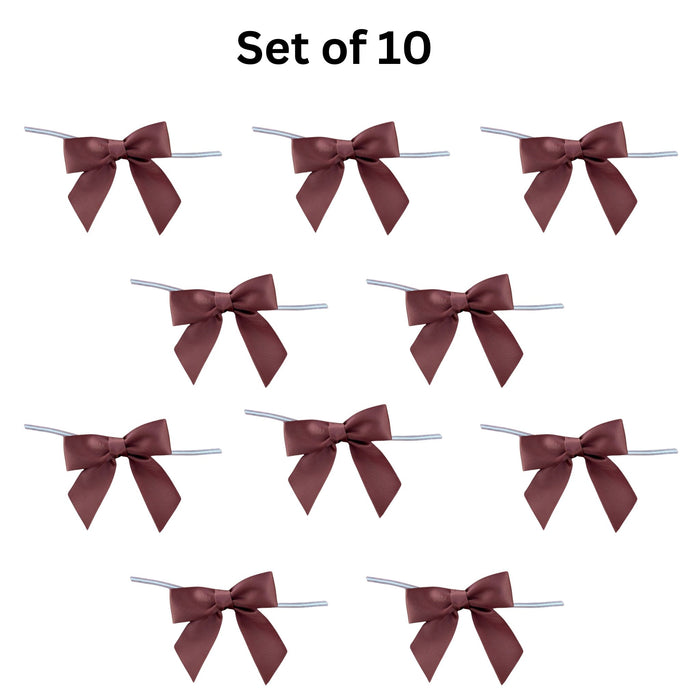 Brown Satin Pre-Tied Bows - 3" Wide, Set of 10