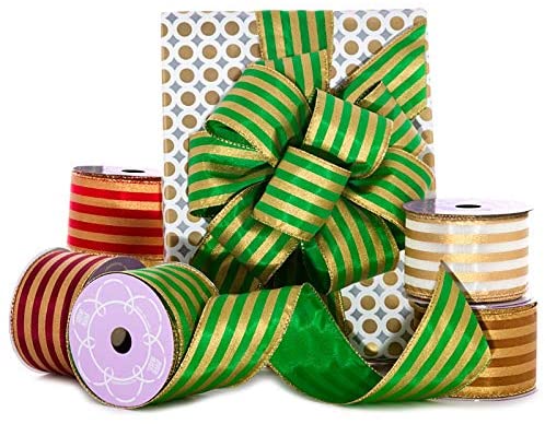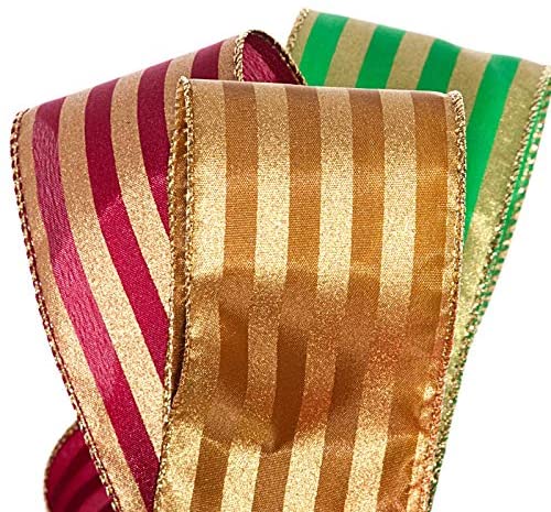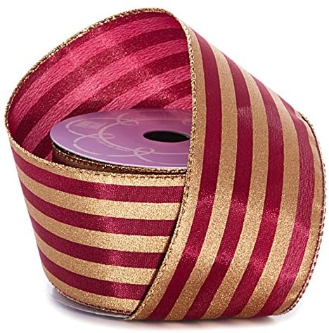 - Ribbon for Gift Wrapping - Wine Red and Gold Striped Ribbon in a roll 2.5 inch wide by 10 yard with Gold trim to make any decoration really shimmer
