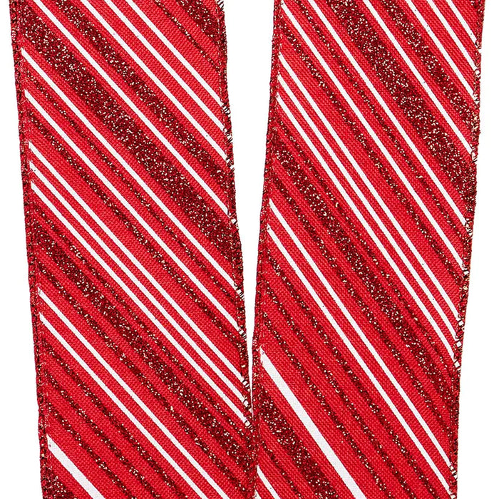 Candy Cane Wired Christmas Ribbon - 2 1/2" x 10 Yards, White Red Peppermint Striped