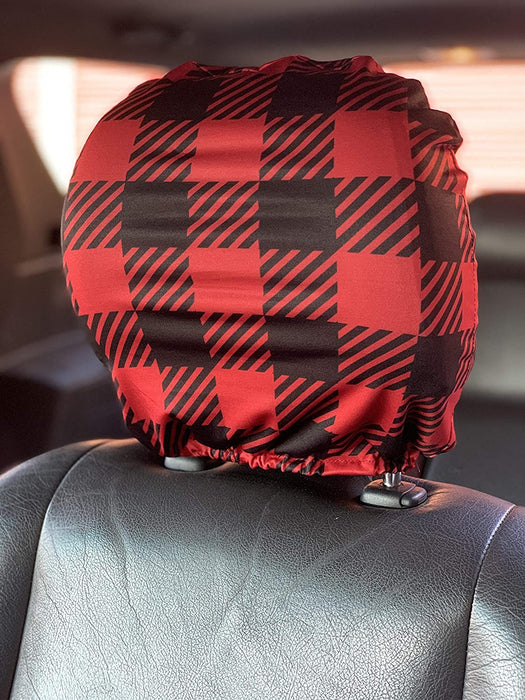 Red and Black Buffalo Plaid, Headrest Protectors, Interior Auto Accessories, Christmas Decor, Festive, Holiday Decor, Checkered Decor, Tartan