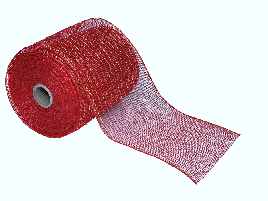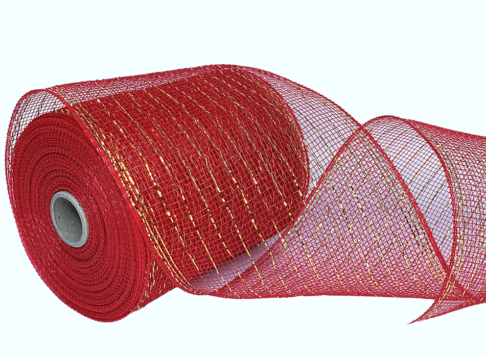 - Deco Mesh Red Ribbon with Metallic Gold Stripes is the ideal addition to any set of Holiday decorating supplies – Perfect for gift baskets, bows, Christmas wreaths, swags and wrapping presents to make them sparkle!