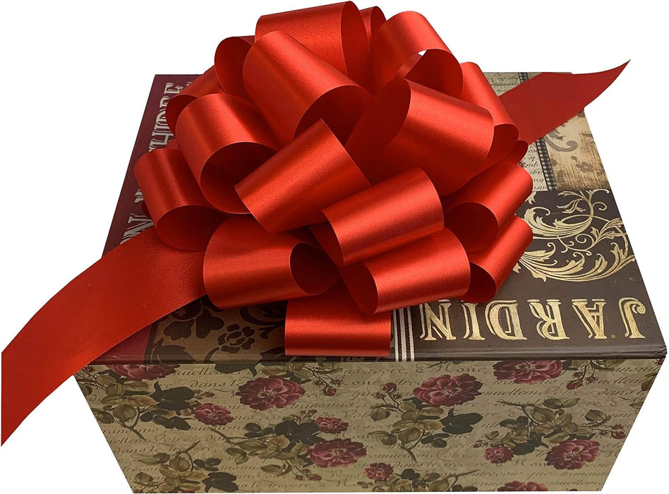 This set contains pull bows in the following sizes and colors: 4" Wide Lavender; 5" Wide Yellow, Emerald; 8" Wider Ribbon White; 8" Wide Fuchsia Pink, Mint Green, Moss Green, Light Brown, Rose Petal Pink, Navy Blue, Black; 9" Wide Royal Blue, Light Blue, Red; and 14" Metallic Gold. Just pull the 2 attached strings together and each bow will automatically form in seconds! It's so quick and easy that you'll have fun doing it. Short and easy to follow instructions included along with a link to an online instructional video. These beautiful, high quality pull bows are great for decorating gifts, gift baskets, parties, weddings, Christmas trees, wine bottles, and much more. You'll have a bow you can use for each Holiday throughout the year like New Year's, Valentine's Day, Mardi Gras, Easter, 4th of July, Breast Cancer Awareness Month, Halloween, Thanksgiving and Christmas!