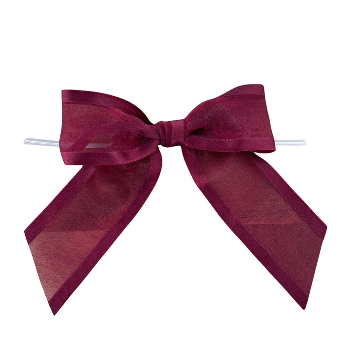 Pre-Tied Burgundy Organza Bows - 4" Wide, Set of 12