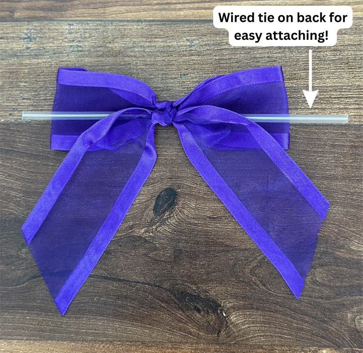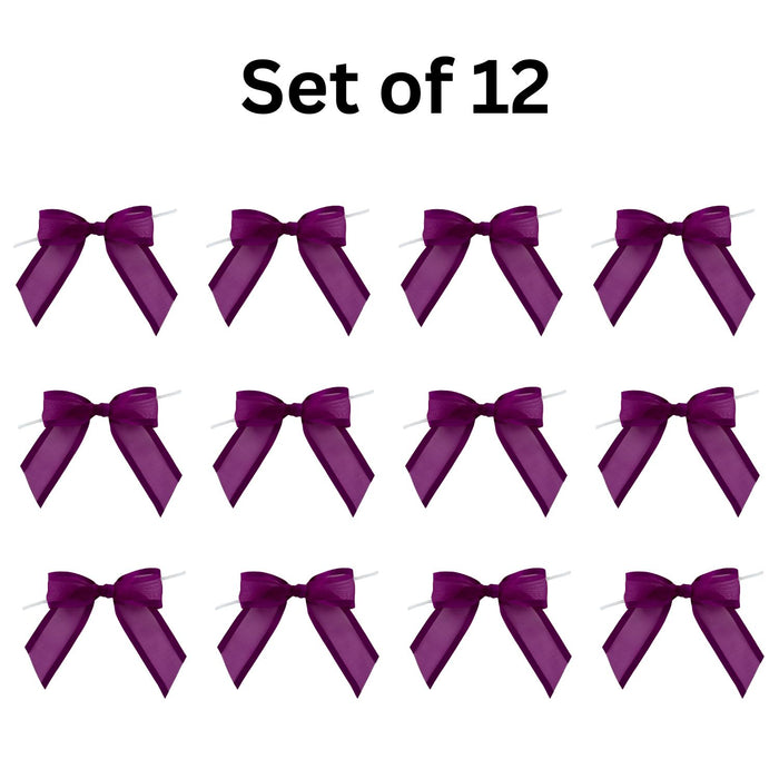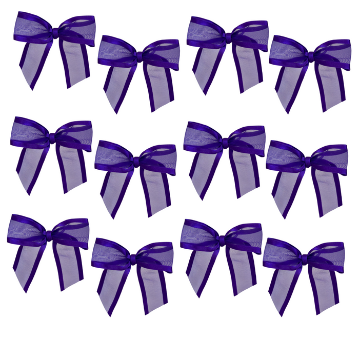 Pre-Tied Purple Organza Bows - 4" Wide, Set of 12