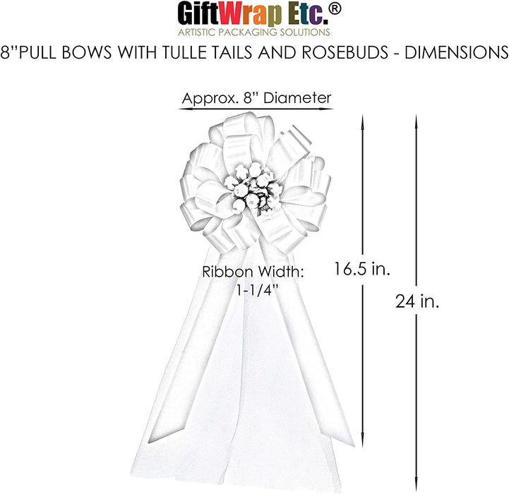 - Tulle tails supplied in strips; just fold in half and tie to back of bow with built in ribbon strings - Add included white rosebud bouquet by bending wire stem around each bow