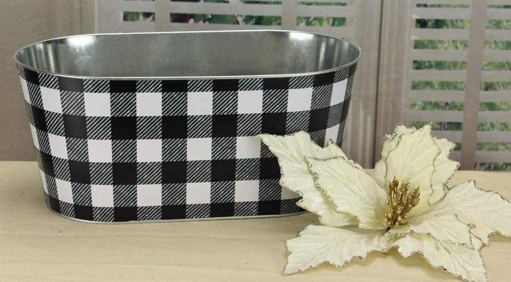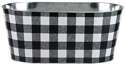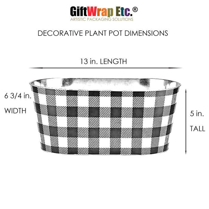 Decorative Buffalo Plaid Plant Pots - L 10" x W 5.25", 5" Tall, Black & White Gingham