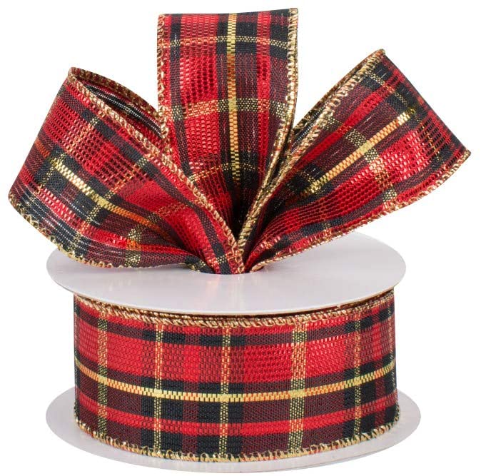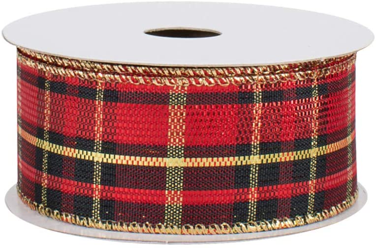 - Ribbon for Gift Wrapping - Christmas Tartan Plaid ribbon with gold stitched wire edges in a roll 1.5 inch wide by 10 yds for all your holiday craft and Christmas Decorations