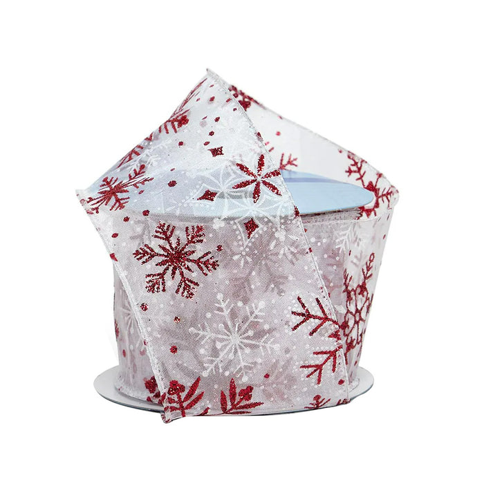 Red White Snowflakes Christmas Ribbon - 2 1/2" x 10 Yards