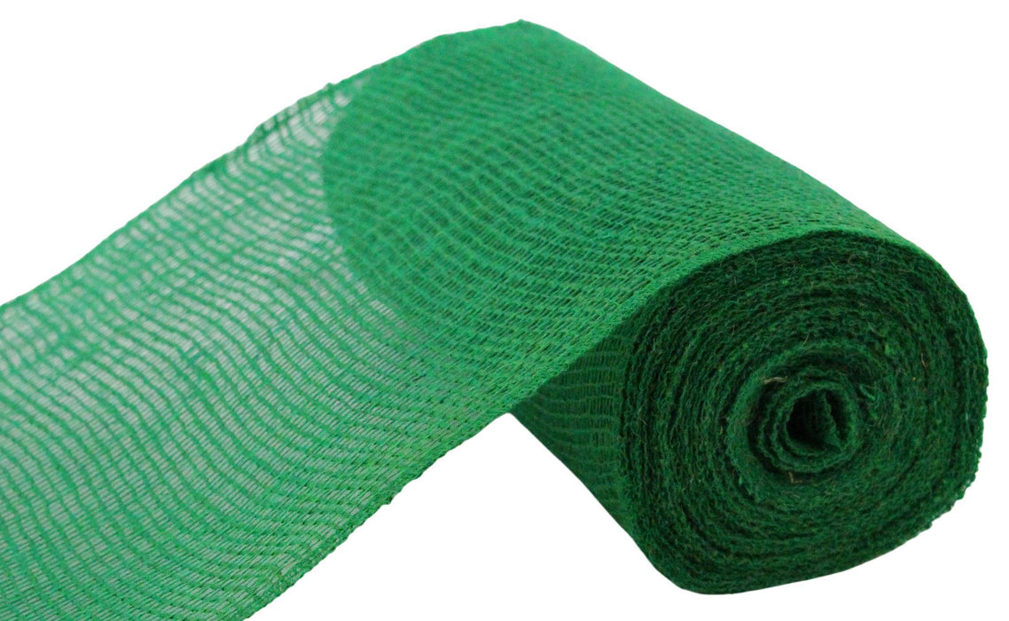 - Comprised of natural jute string creating a Green linen fabric ribbon 10 inches wide, this roll of burlap fabric roll material by the yard can be used for small upholstery projects, birthday banners, outdoor parties and even a rustic bridal shower