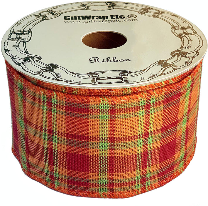 - Ribbon for Gift Wrapping - Holiday Cider Plaid ribbon with vivid Orange, Green and Red design with wire edges in a roll 2.5 inch wide by 10 yds for all your holiday craft and Christmas Decorations