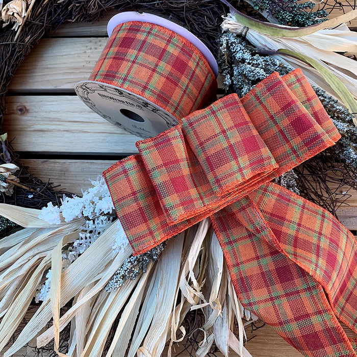 Fall Cider Plaid Wired Ribbon - 2 1/2" x 10 Yards, Wired Edge