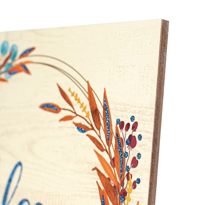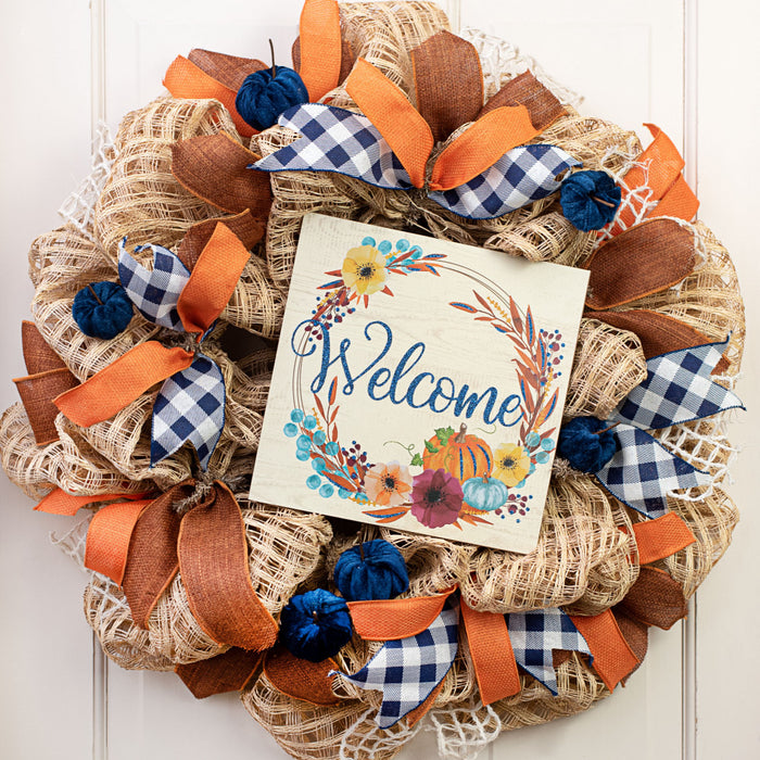 Fall Wreath Wooden Welcome Sign - 10" x 10"
