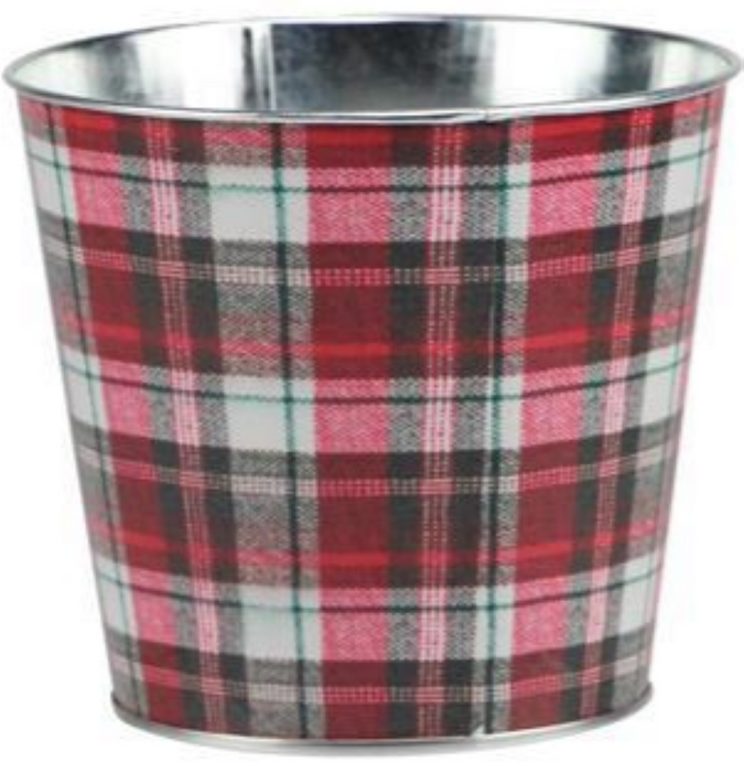 Farmhouse Christmas Plaid Tin Pot - 5" Diameter, 4.5" Tall