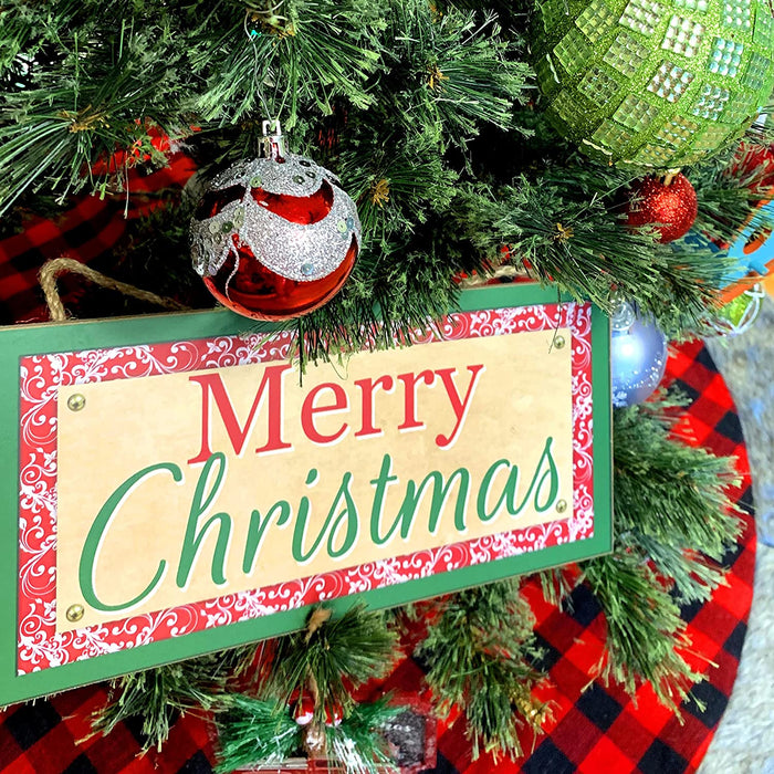 Festive Merry Christmas Wooden Sign - 12.5" x 6"