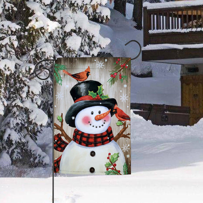 Frosty & Cardinals Christmas Garden Flag - 12" x 18"