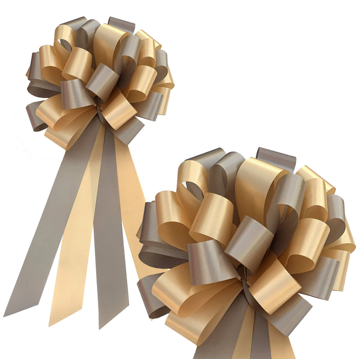Gold and Light Brown Pull Bows - 8" Wide, Set of 6
