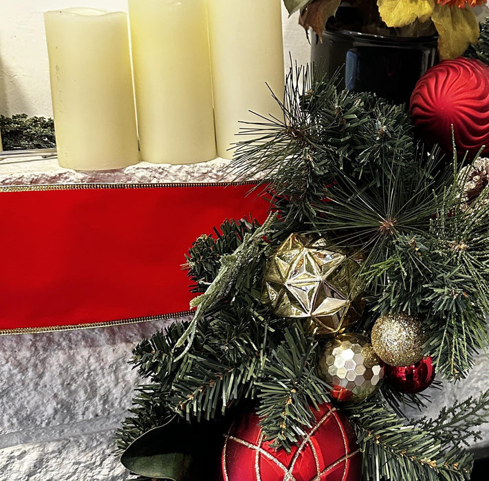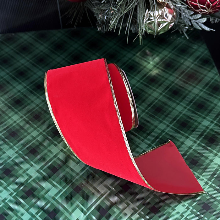 Christmas Red Velvet Ribbon Gold Trim- 4"x10Y, Wreath Decoration, Holiday Decor