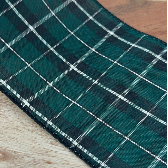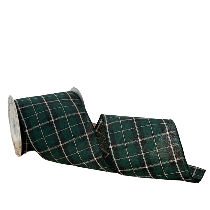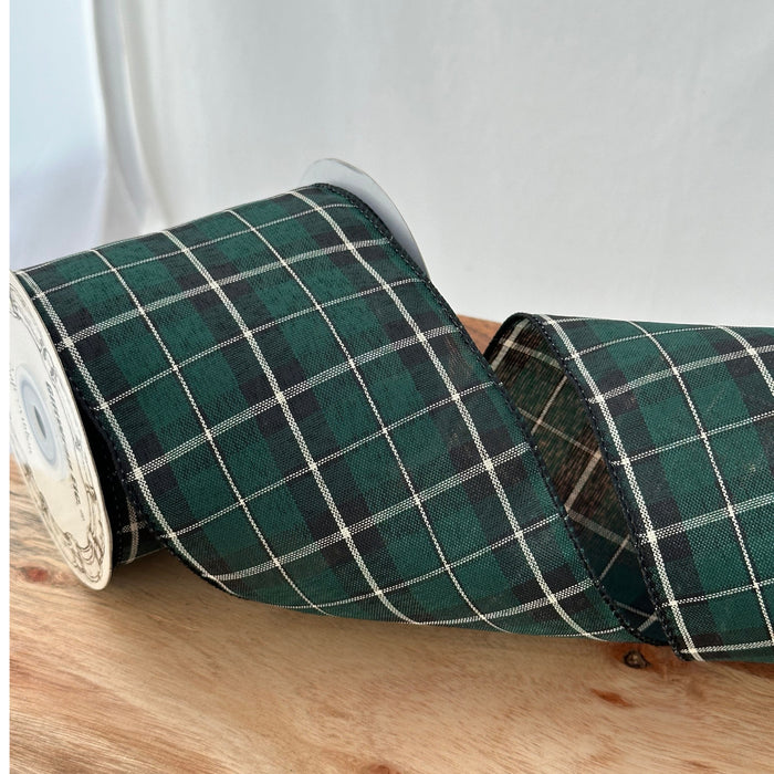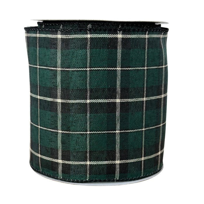 Green & Black Plaid Christmas Ribbon - 4" x 10 Yards