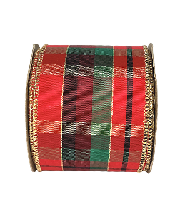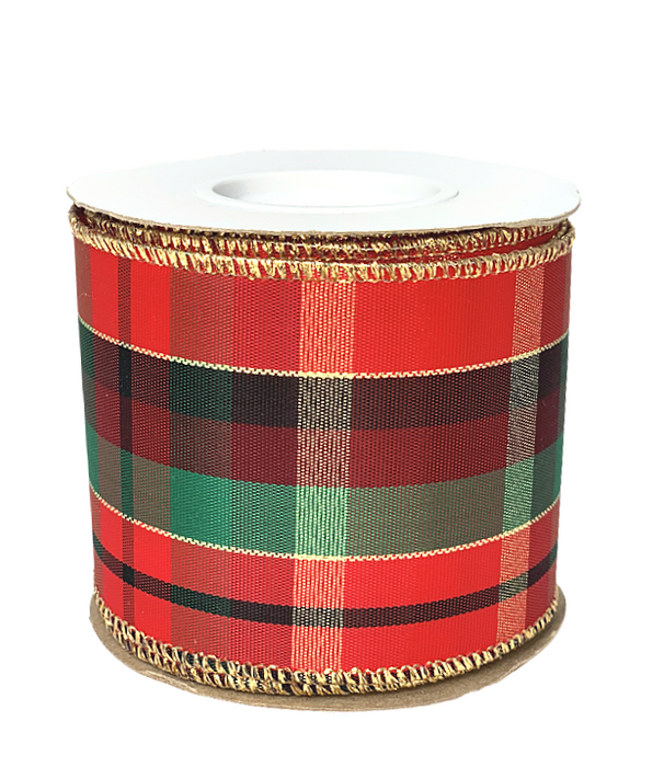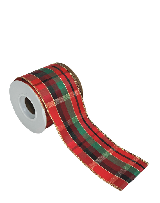 - Ribbon for Gift Wrapping - Christmas Green, Red and Gold Plaid ribbon with gold stitched wire edges in a roll 2.5 inch wide by 50 yds for all your holiday craft and Christmas Decorations