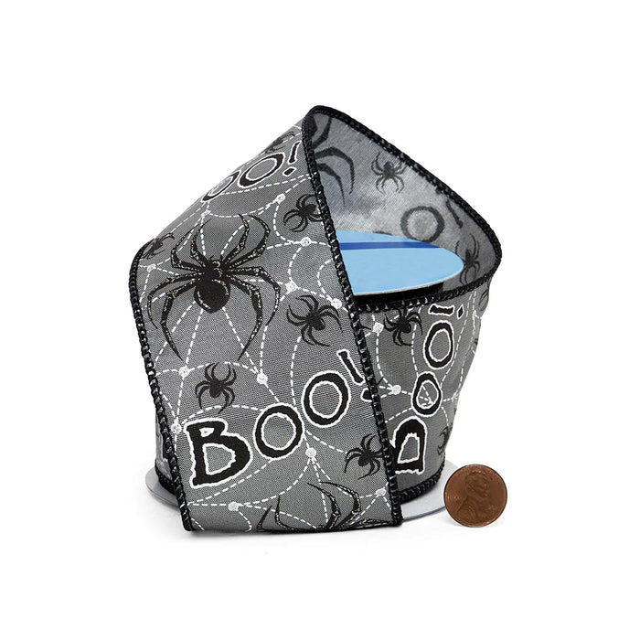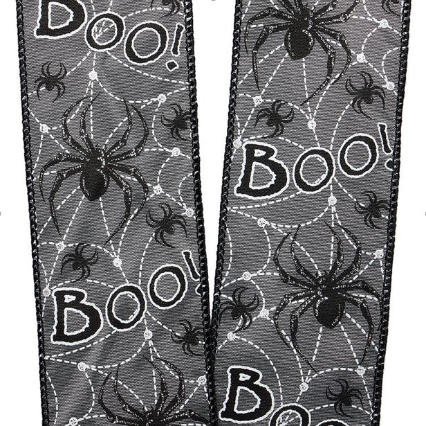Boo! Spiders Halloween Wired Ribbon - 2 1/2" x 10 Yards