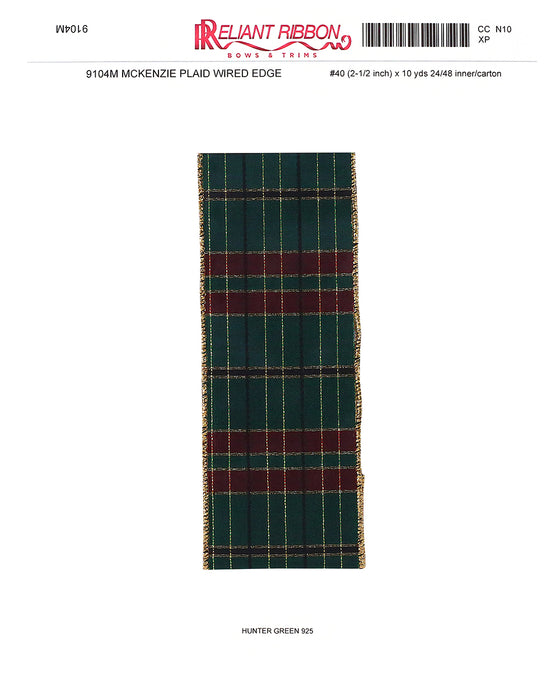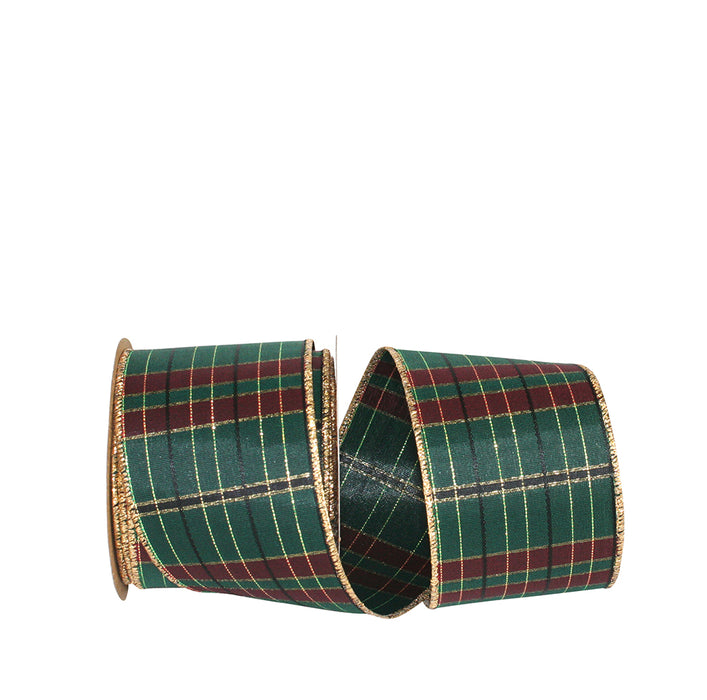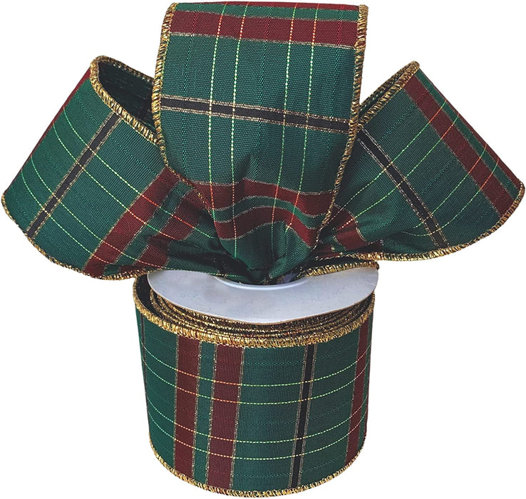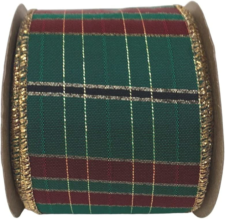 Hunter Green Christmas Plaid Wired Ribbon - 2 1/2" x 10 Yards