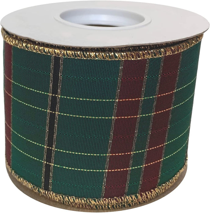 - Ribbon for Gift Wrapping - Christmas Hunter Green, Burgundy Red and Gold Tartan ribbon with gold stitched wire edges in a roll 2.5 inch wide by 10 yds for all your holiday craft and Christmas Decorations