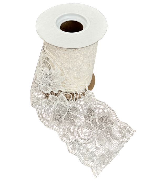 Ivory Floral Lace Wedding Ribbon - 4" x 10 Yards