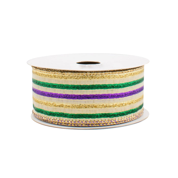 Lamé Striped Mardi Gras Ribbon - 1 1/2" x 10 Yards