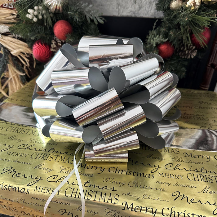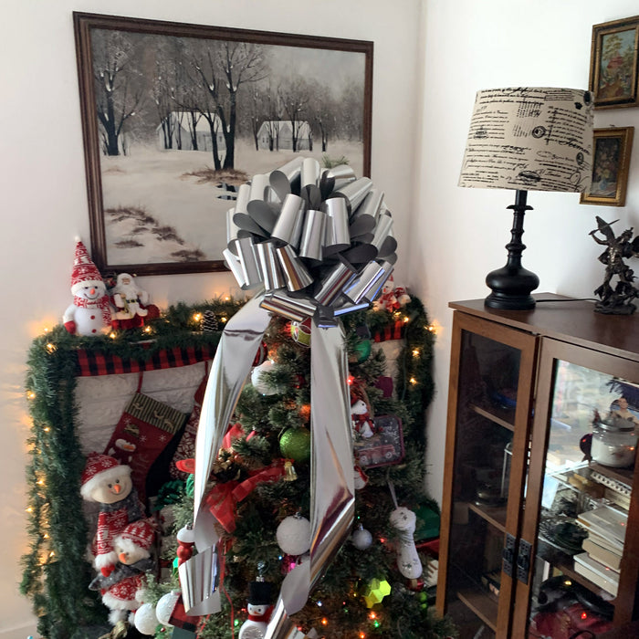 Large 14" Metallic Silver Gift Bow - Gift Silver Anniversary Christmas Tree Topper Graduation