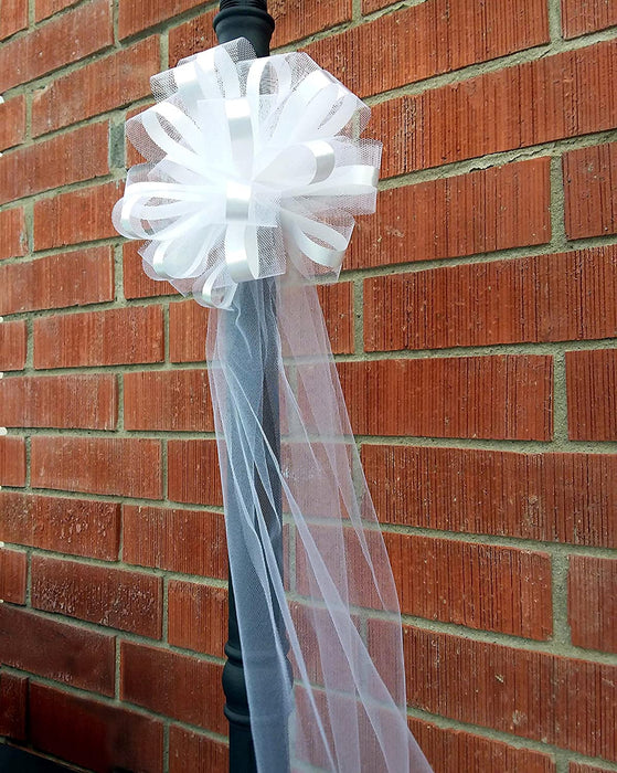• Full and fluffy with an abundance of ribbon loops and long tulle streamers, these wedding bows will add a truly romantic touch to your special day