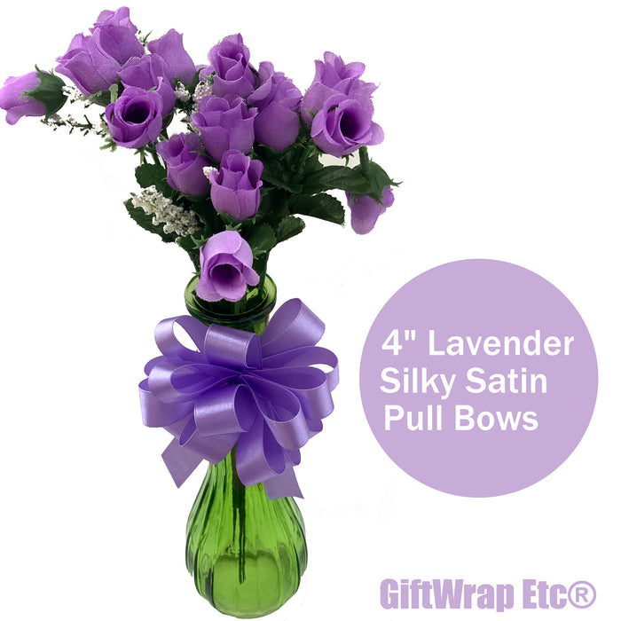 Lavender Satin Decorative Pull Bows - 4" Wide, Set of 9