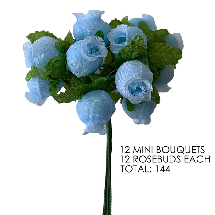 Light Blue Artificial Silk Mini Roses - 12 Dozens, 144 Rosebuds Total