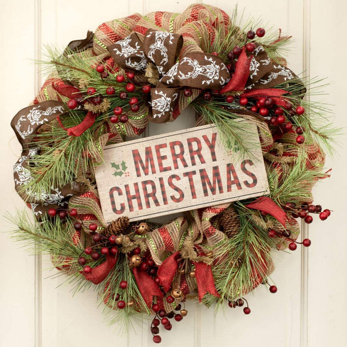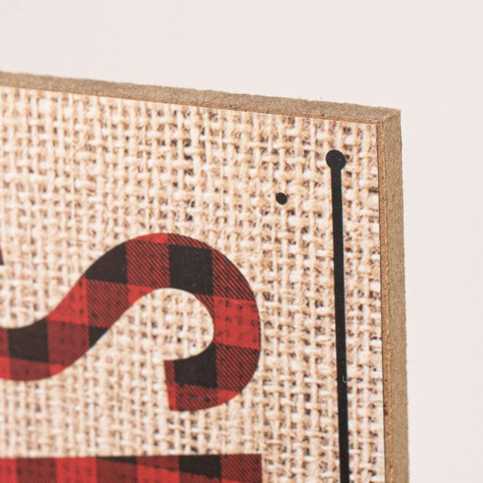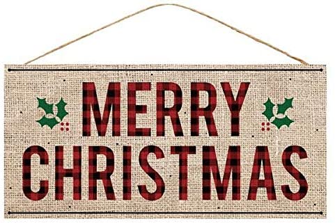 Merry Christmas Plaid Burlap Sign - 12.5" x 6"