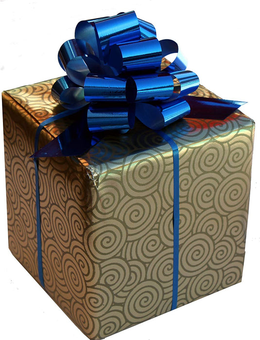 Metallic Royal Blue Gift Pull Bows - 5" Wide, Set of 10
