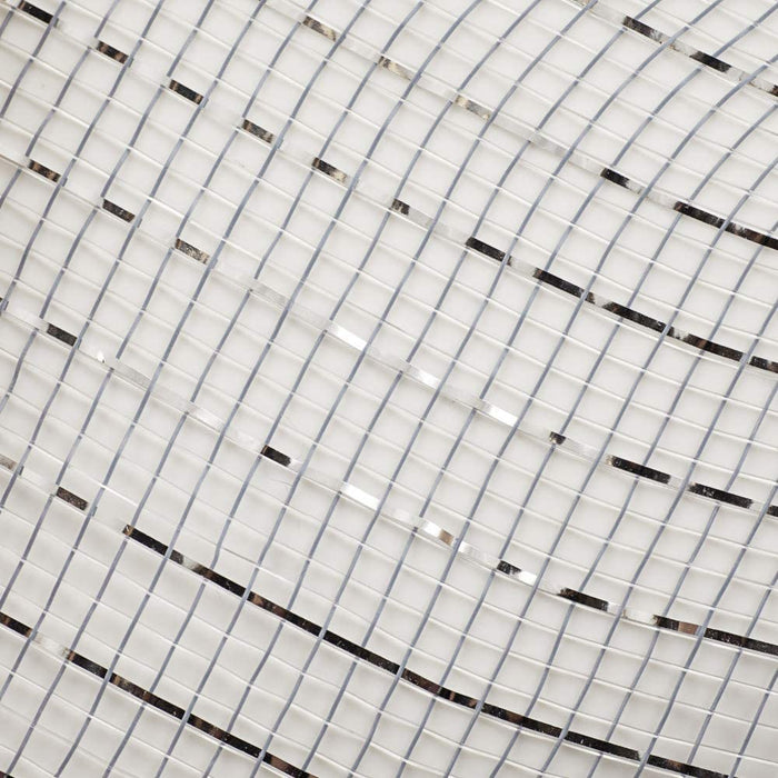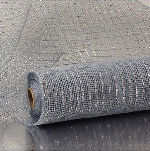 - 10" x 10 Yard Silver Deco Mesh features sparkling silver iridescent metallic strips woven into every 5th row of mesh making rows of sparkle approximately every 3/8 inch!