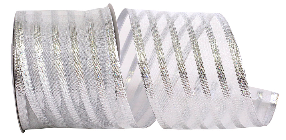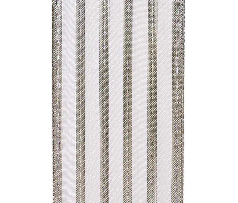 Metallic Silver Striped Christmas Ribbon - 2 1/2" x 10 Yards