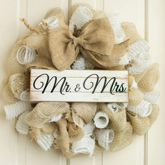 • 3/16" thick wood with a thick jute rope string for hanging inside and out - Pairs great with burlap, deco mesh, tulle and satin wedding ribbon! - Sign comprised of MDF Wood with Printed Paper Text