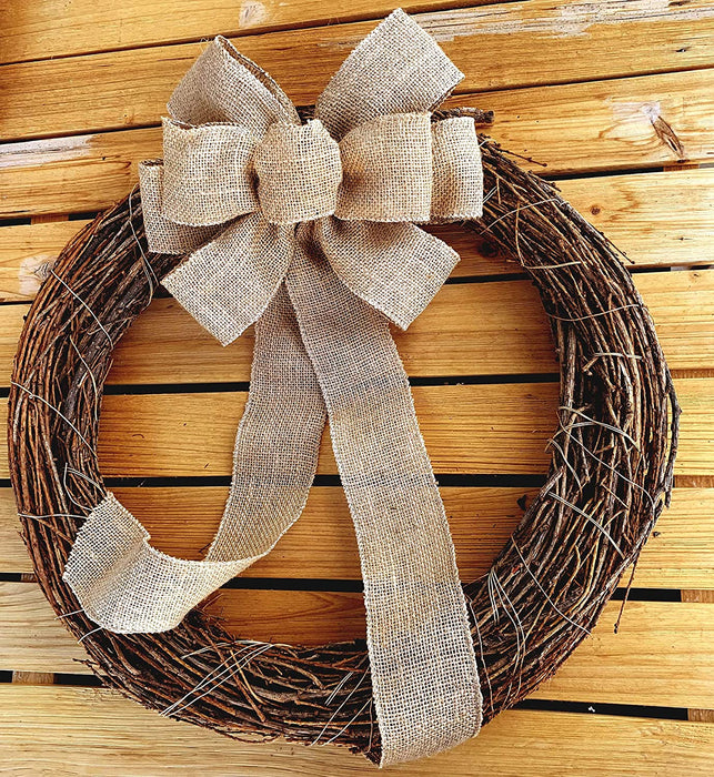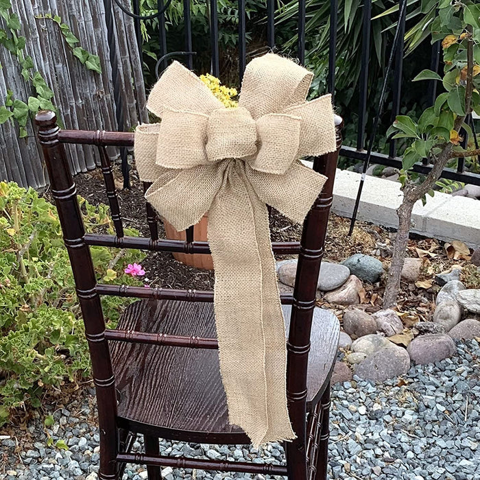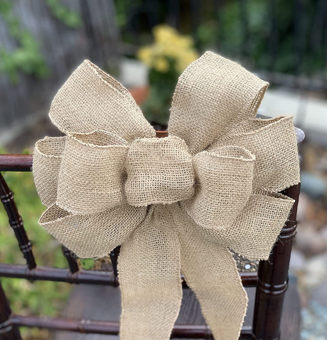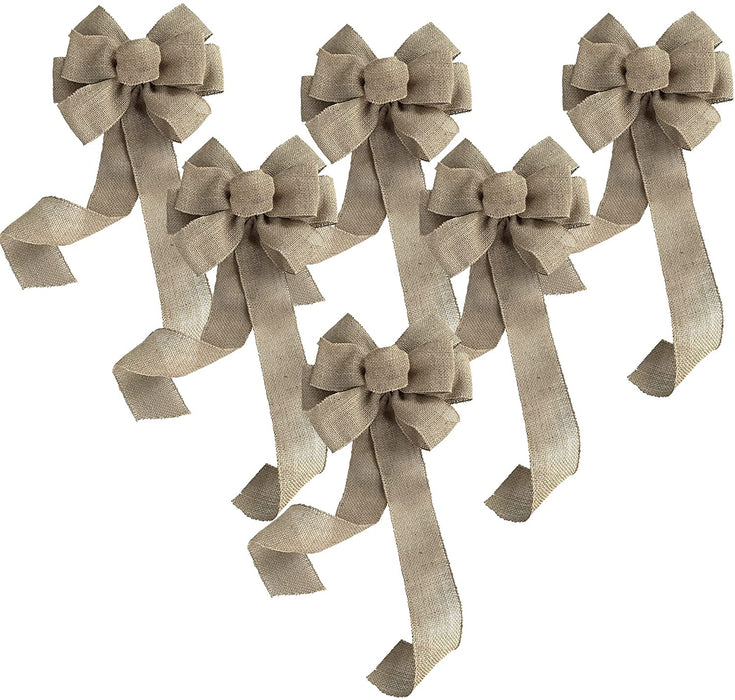 Natural Burlap Ribbon Wedding Bows - 10" Wide, 18" Long Tails, Set of 6