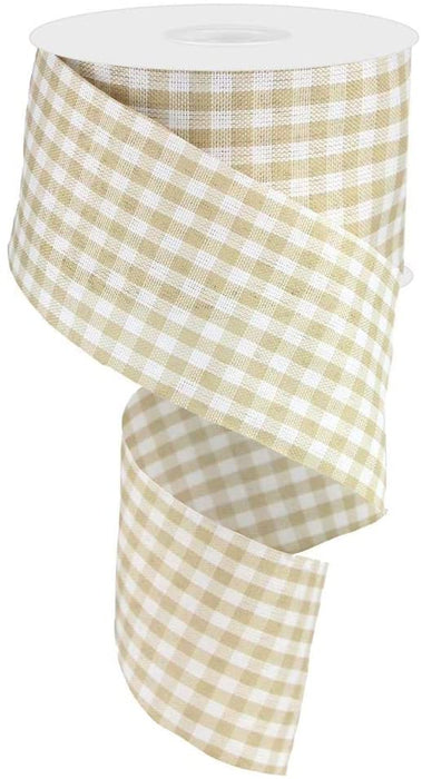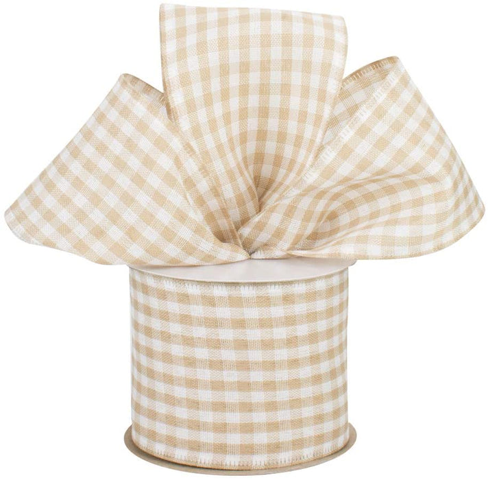 Natural Gingham Wired Edge Ribbon - 2 1/2 Inch x 10 Yards